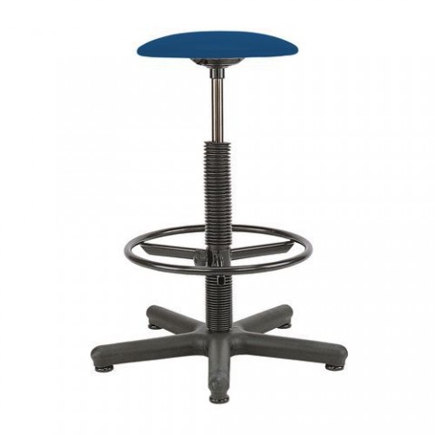 Vyvýšené pracovní stoličky s omyvatelným sedákem ze syntetické kůže a opěrným kovovým kruhem pro větší pohodlí. Stolička je z důvodu větší stability vybavena plastovými kluzáky. barva sedáku: černá, modrá barva konstrukce: černá materiál sedáku: syntetická kůže materiál kříže: plast nosnost: 100 kg rozměry v x š x h: 52 - 78,5 x 64,5 x 64,5 cm rozměry sedáku š x h: 36 x 36 cm výška sedáku: 52 - 78,5 cm opěrka nohou: ano typ opěrky nohou: pevné odolnost: standardní (50 000 cyklů) dodáváno v rozloženém stavu, plynový pístZvýšené pracovní stoličky Golia s kluzáky